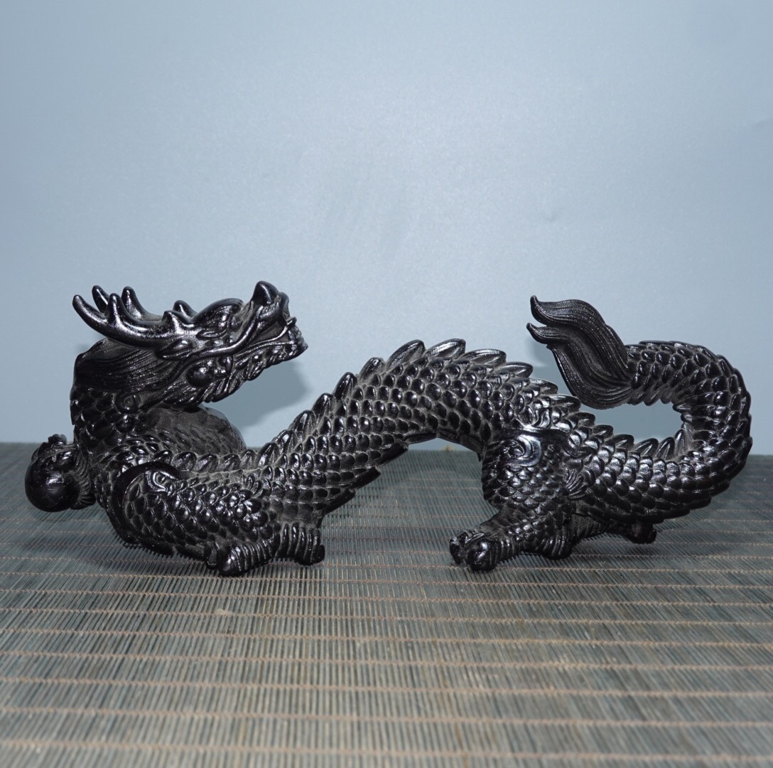 - ▽鴻▽ 黑檀木製 細密彫 龍行天下 置物 古賞物 中国古玩 中国古美術