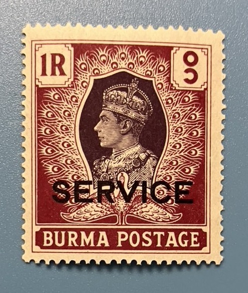 - 南方占領地 切手★ビルマ ジョージ6世 1R SERVICE 1939年 治安維持委員会 ヒンジ跡 裏糊 未使用 詳細不明