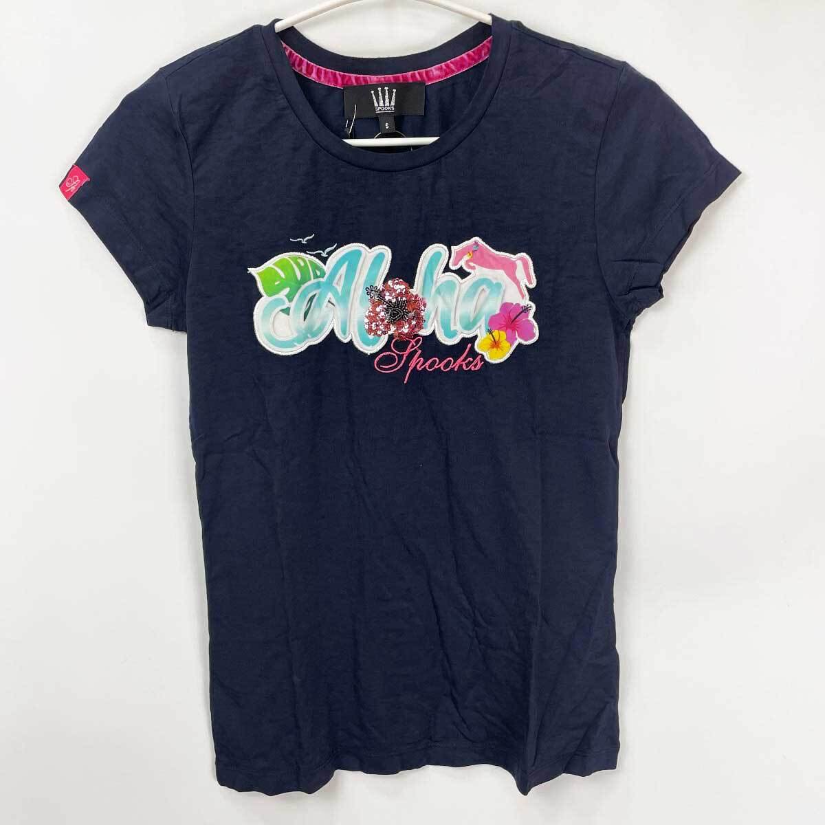 > 【中古・未使用品】スプークス SPOOKS Aloha Shirt 半袖 Tシャツ ライディングシャツ S ネイビー レディース 乗馬 馬術