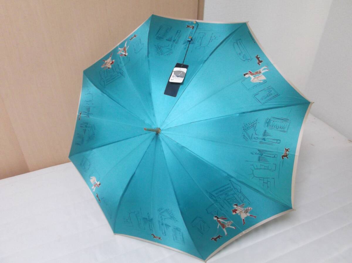 > 【BURBERRY/バーバリー】綺麗 ブルー 水色 オシャレ 可愛い 犬 デザイン 雨傘 長傘 タグ付 日本製 新品☆即決 青 ベージュ PayPay ペイペイ