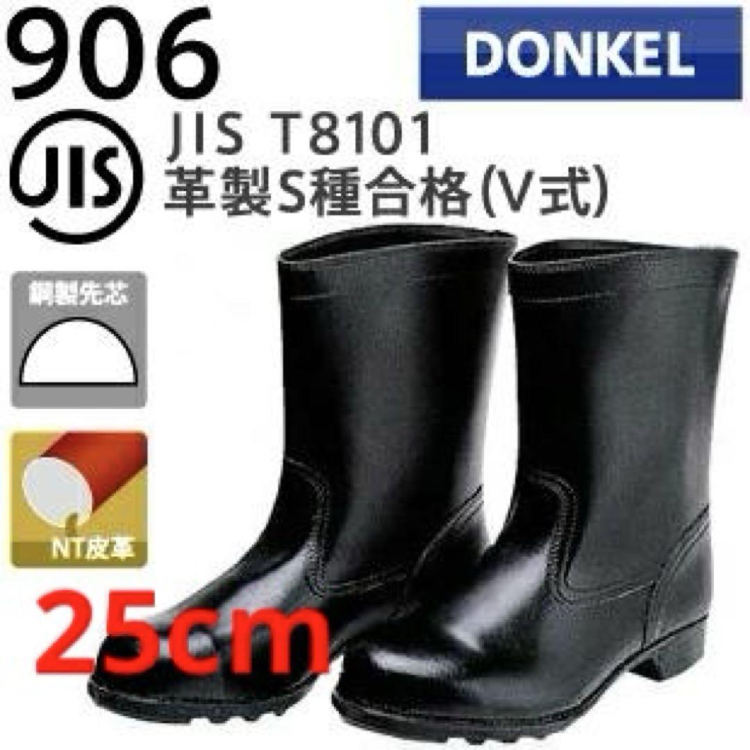 - ドンケル 安全靴 耐油 耐薬品靴 906 半長靴 25cm ブラック★新品 送料無料★T8101 革製S種合格 鋼製先芯 作業靴 現場 耐水 5628553