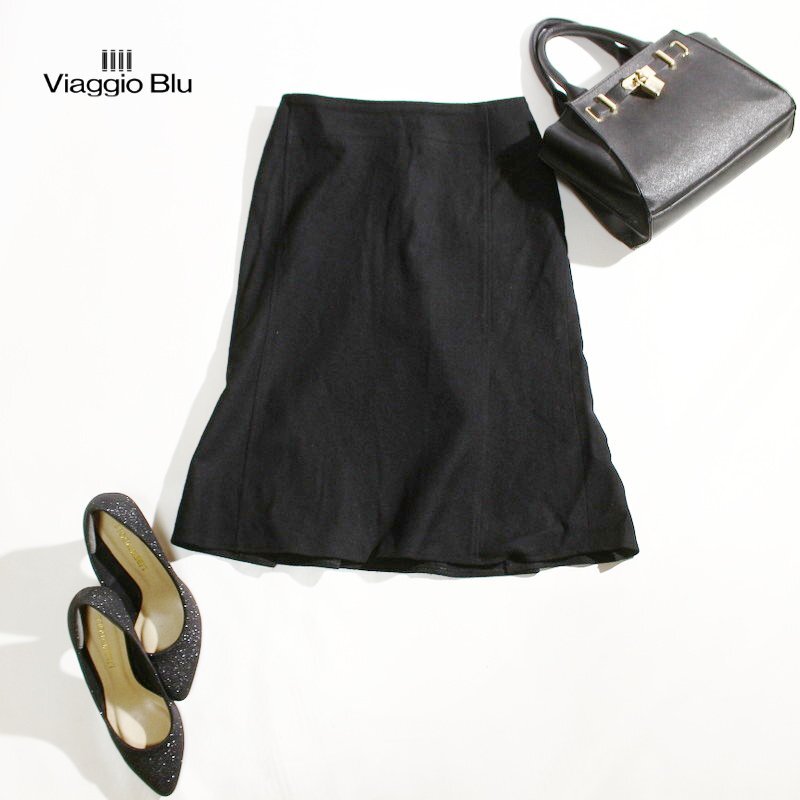 > 美品 ビアッジョブルー Viaggio Blu 冬 毛99% Aライン ウールスカート 9号 2 ブラック 黒 通勤 オフィス フォーマル 綺麗め ミセス