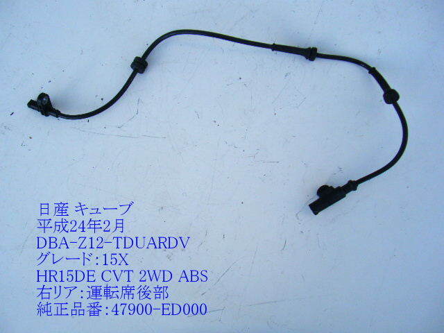- ◆Z12 日産 キューブ CUBE H24年2月 右リア 運転席後部 ABSセンサー リアセンサー 47900-ED000 [13789]
