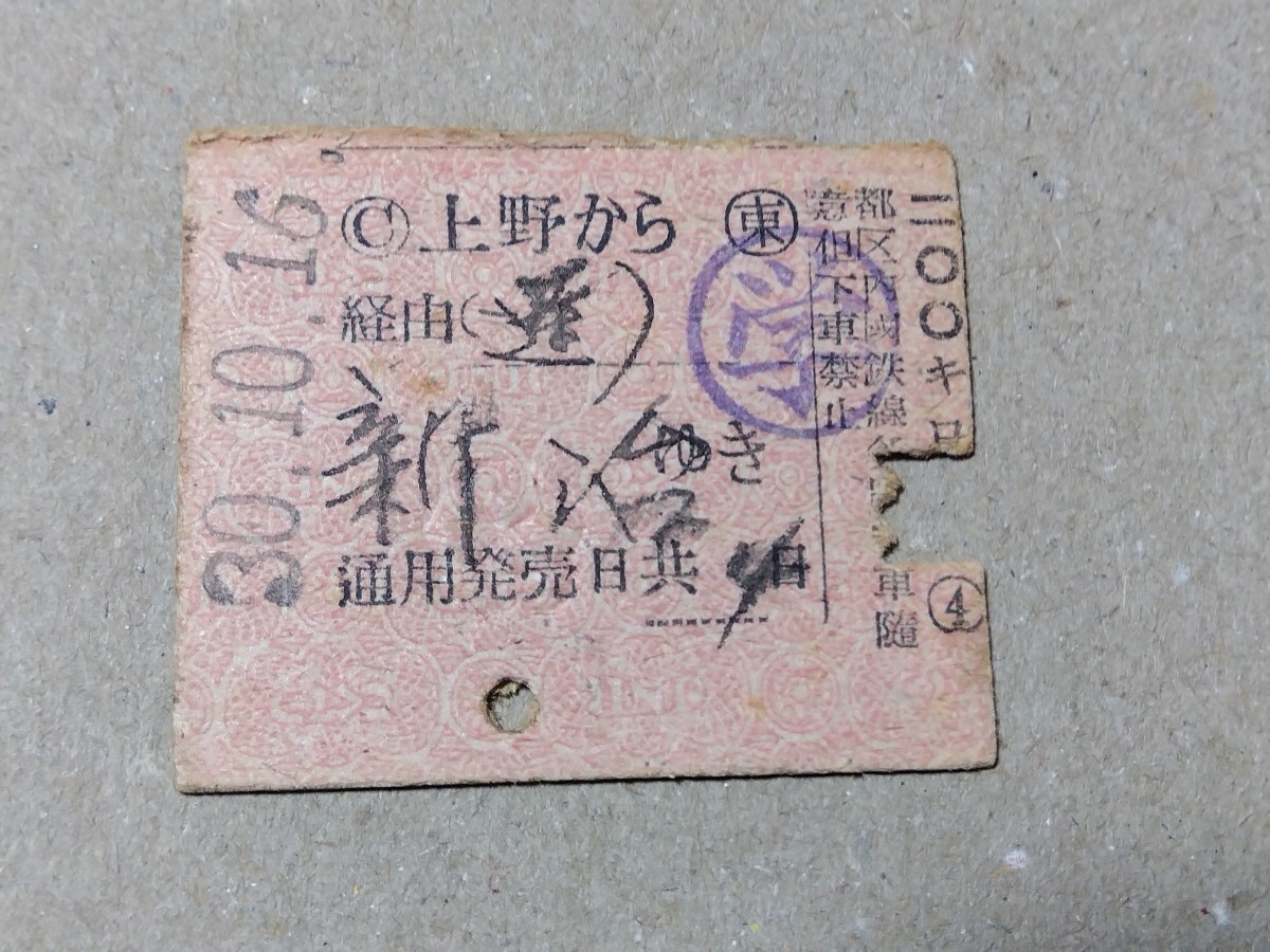 - 250314-19【国鉄きっぷ】硬券 上野→新治 補充片道乗車券 水戸線 3等 昭和30年
