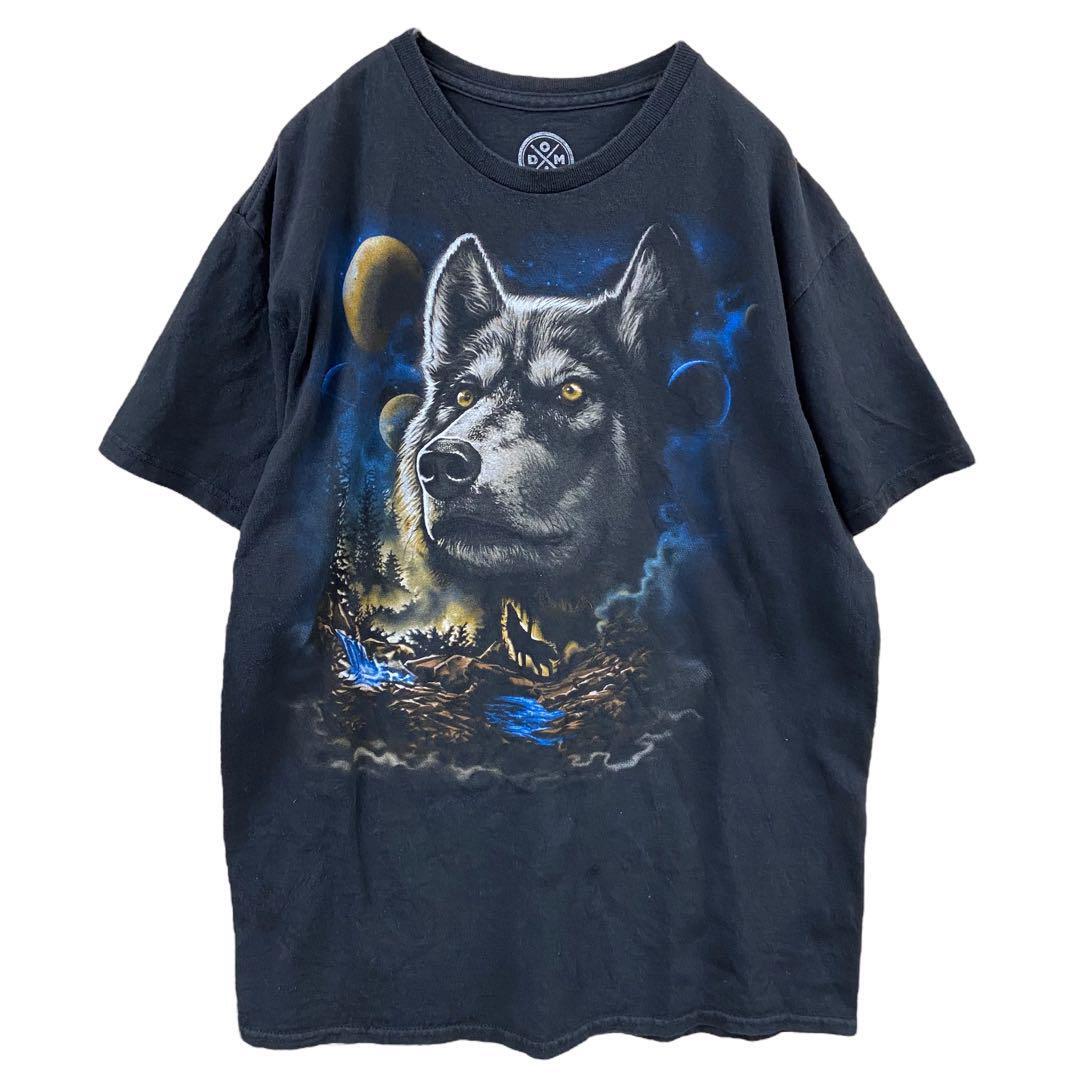 - ドム メンズTシャツ アニマルプリント 狼 ウルフ 半袖 M 黒 【2813】