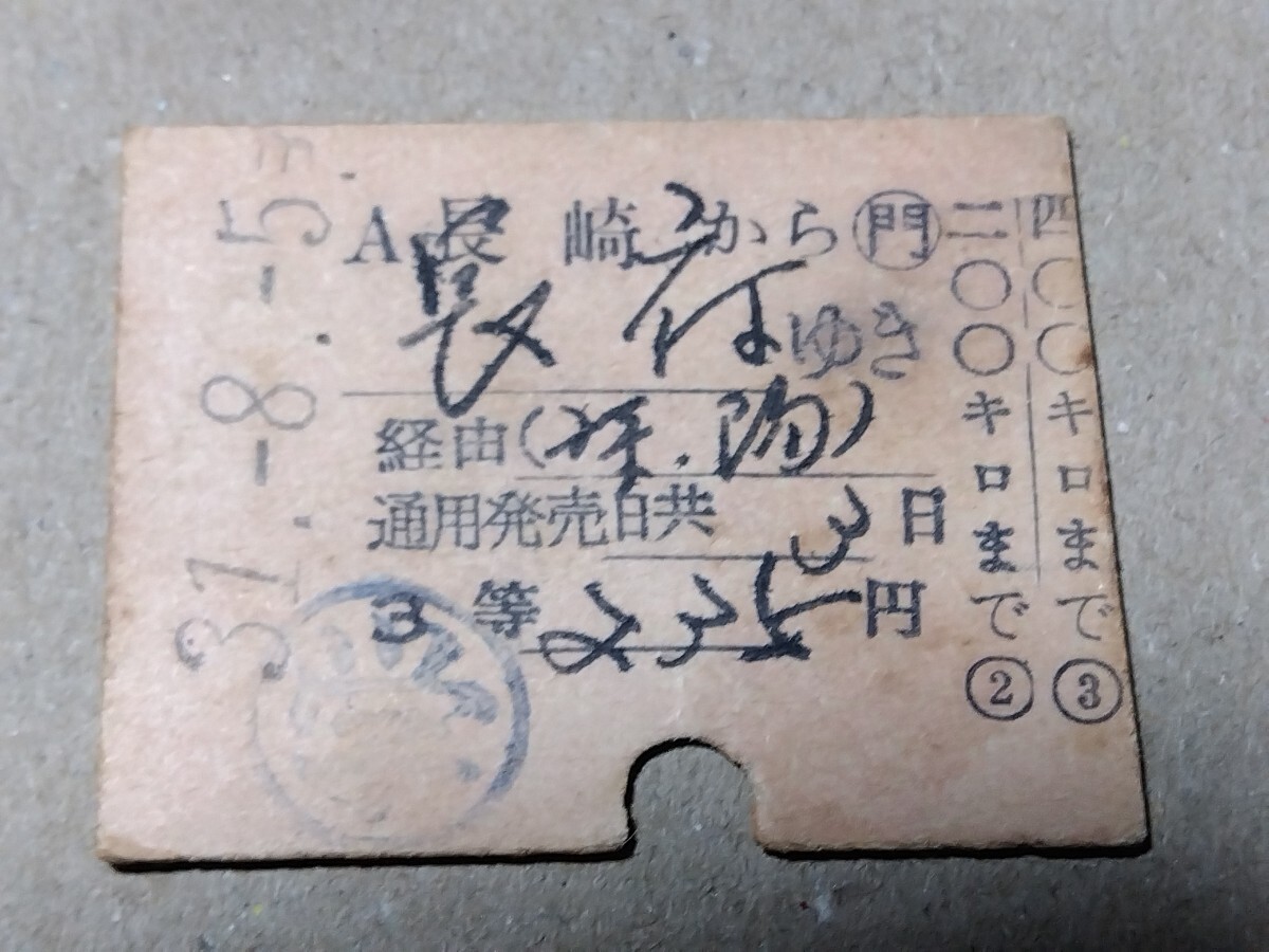 - 250314-130【国鉄きっぷ】硬券 松江→三ノ宮 補充片道乗車券 伯備線 昭和32年