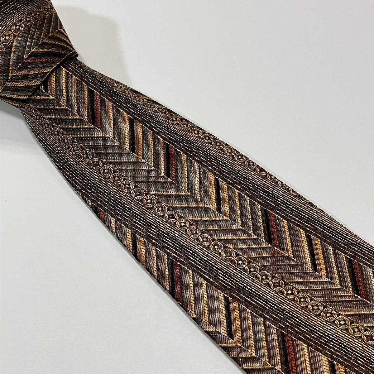 - ヘリンボーン 七宝 ストライプ ジャガード シルク ネクタイ 古着 504-8