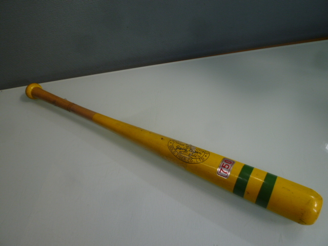 - golg tiger/ゴールドタイガー 木製バット 40年以上前 子供用 黄色 日本製 サイズ75cm 未使用 長期保管品 昭和レトロアンティーク 当時物