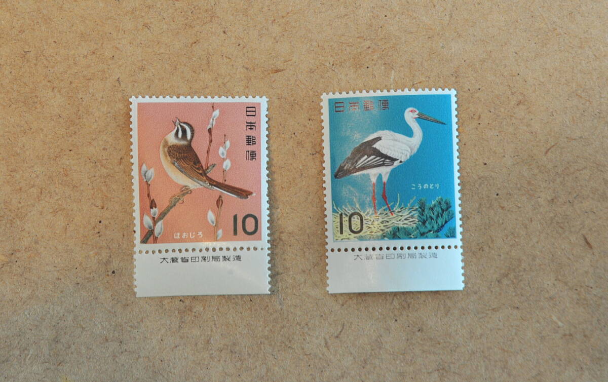 - 鳥シリーズ・コウノトリ・ホオジロ・銘板付き・2種類・未使用