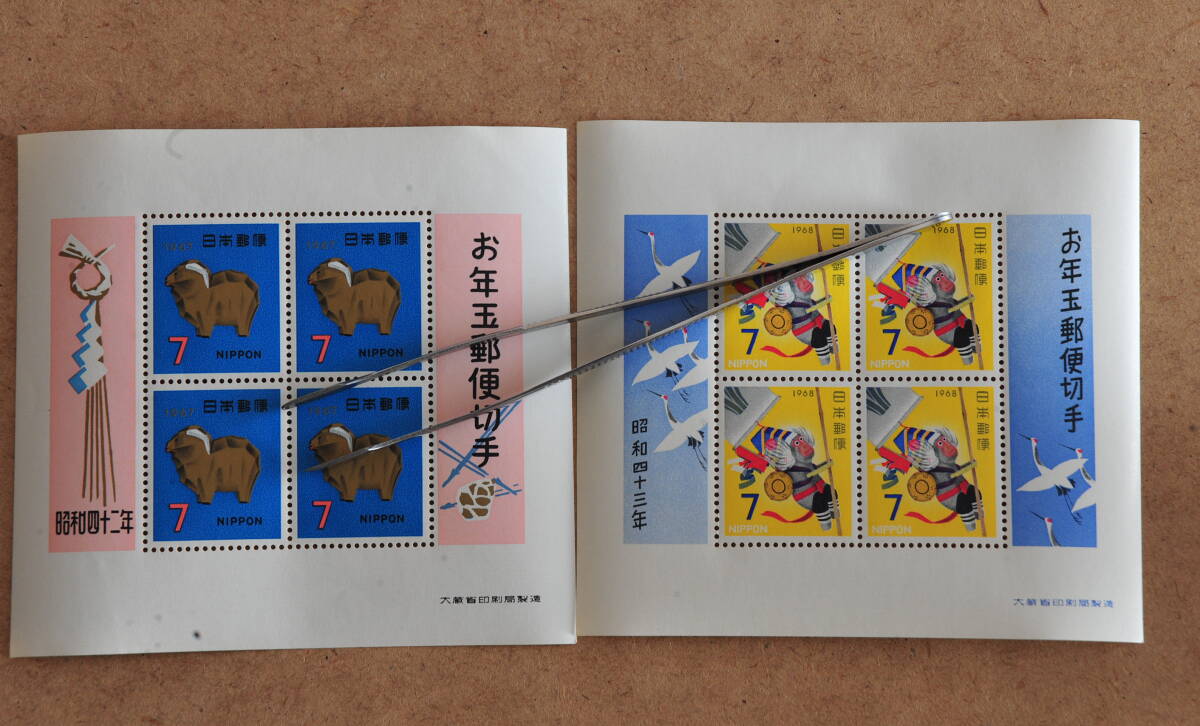 - 年賀切手・昭和42年・43年・お年玉小型シート・2種類・未使用