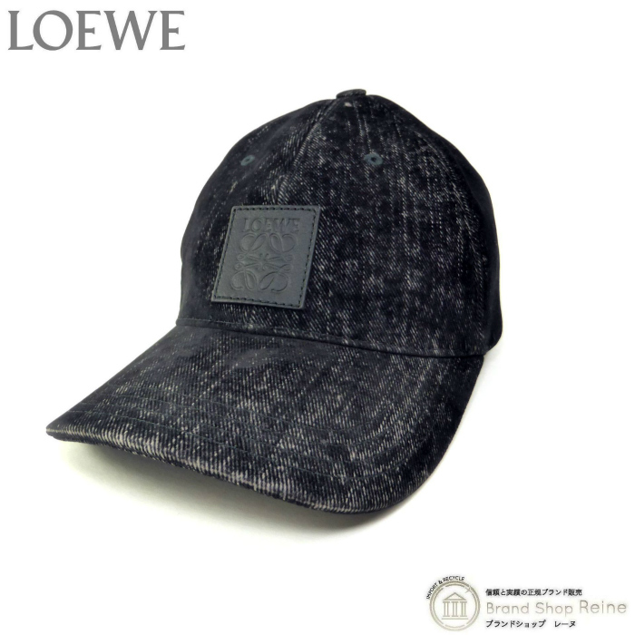 - ロエベ (LOEWE) パッチ キャップ フロックデニム カーフパッチ キャップ 帽子 K820358X27 ブラック(新品同様)中古