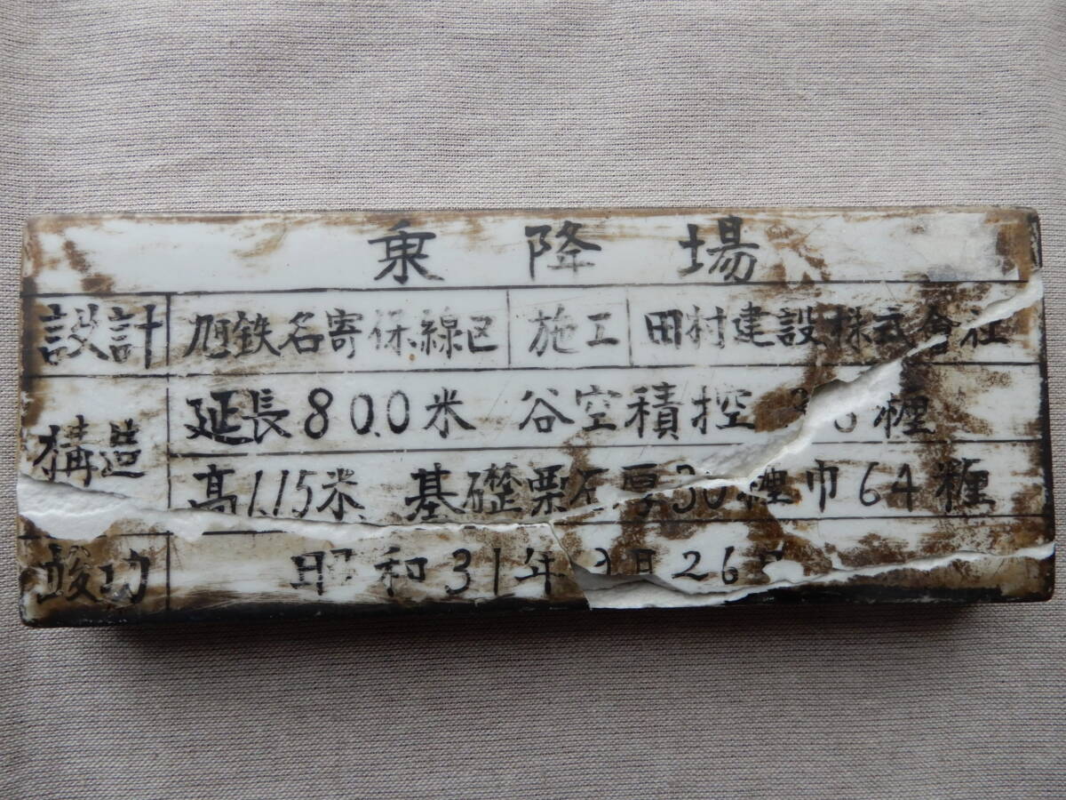 - 国鉄/旭川鉄道管理局名寄保線区「乗降場」石製プレート 昭和31年●月26日竣功 タヨ駅(多寄駅)名寄線宗谷本線 AC1246