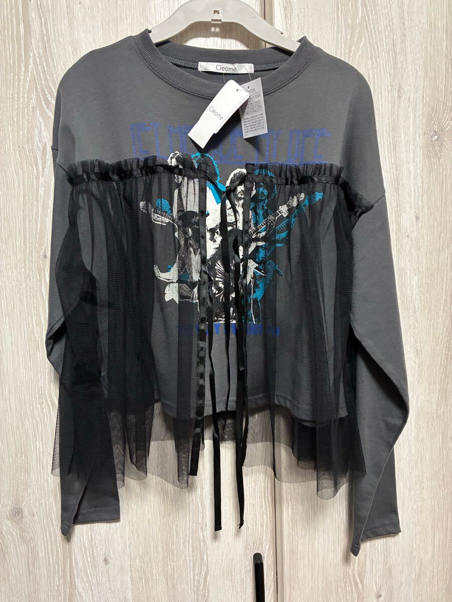 - Cleome チュールフリル付き ロングTシャツ 薄手 Mサイズ レディース