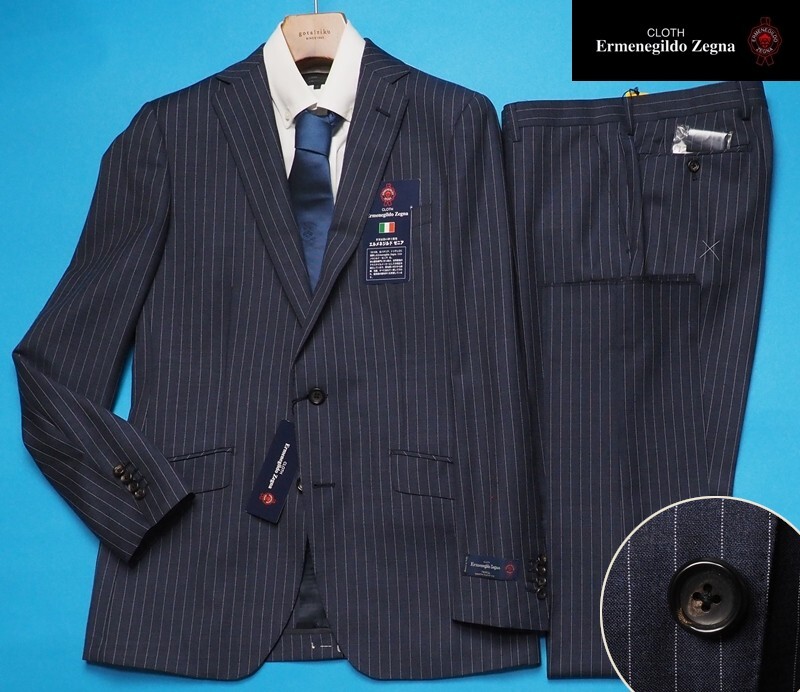 - 新品17.3万円 大手百貨店扱い 春夏『Ermenegildo Zegna ゼニア TROPICAL 伊製生地』ウール100% ストライプ スーツYA8紺(C) 1509661