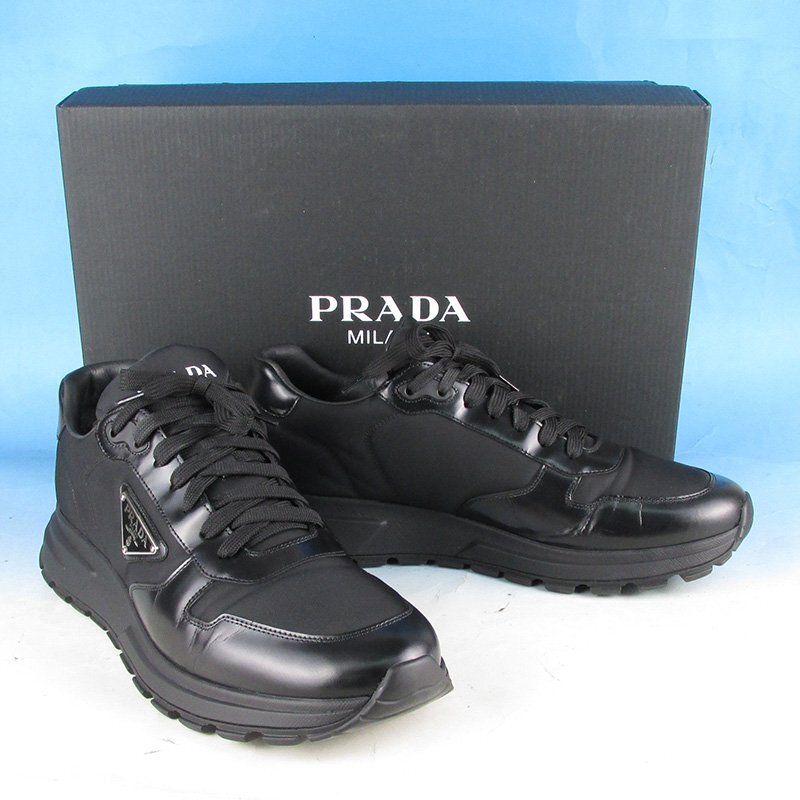 > LYF16538 PRADA プラダ PRAX 01 Re-Nylon xブラッシュドレザー スニーカー ブラック 10 美品