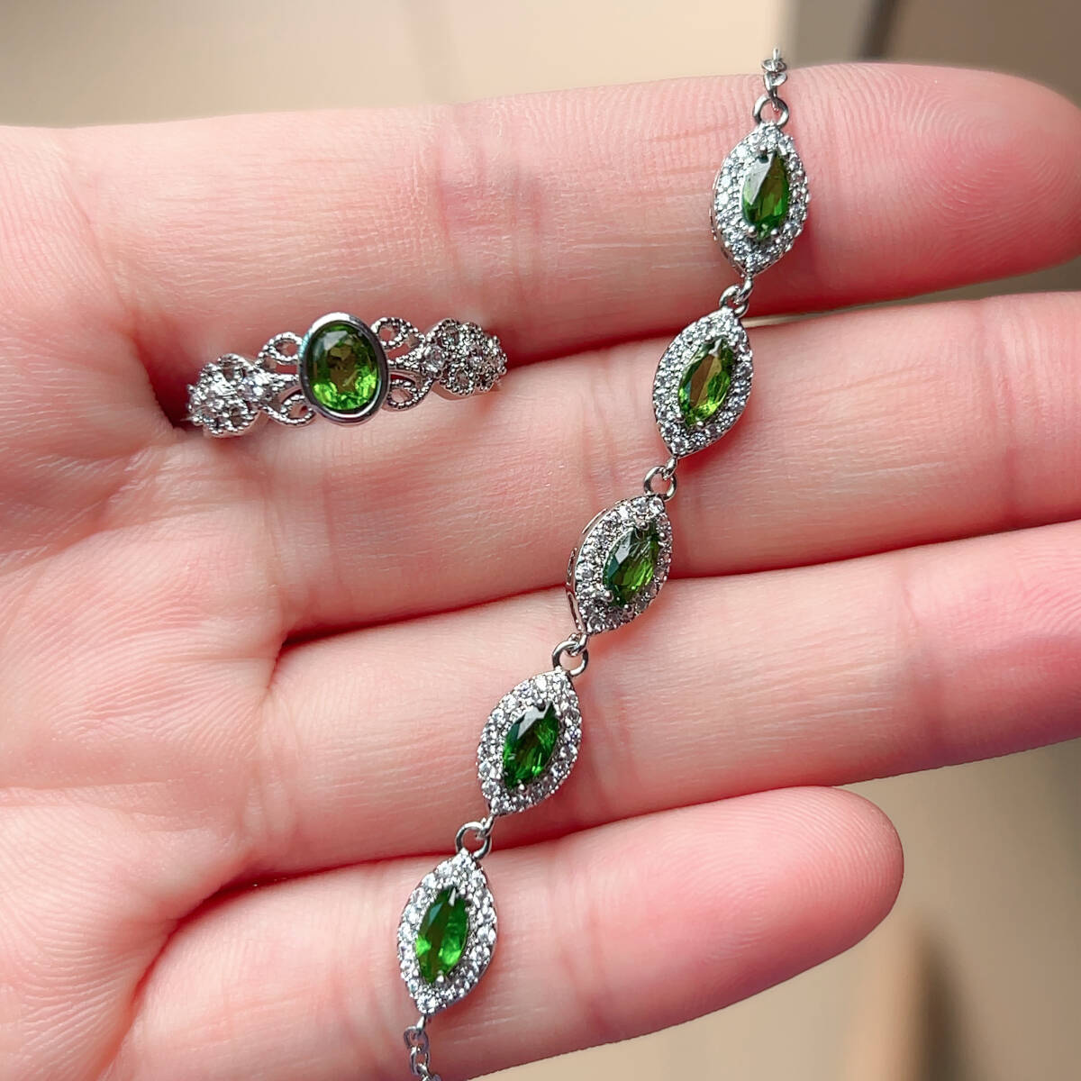 > ◇クロムダイオプサイト(透輝石)◇ブレスレット+リング(指輪)◇天然石◇パワーストーン◇巾着袋付き◇プレゼントにも 031S3169