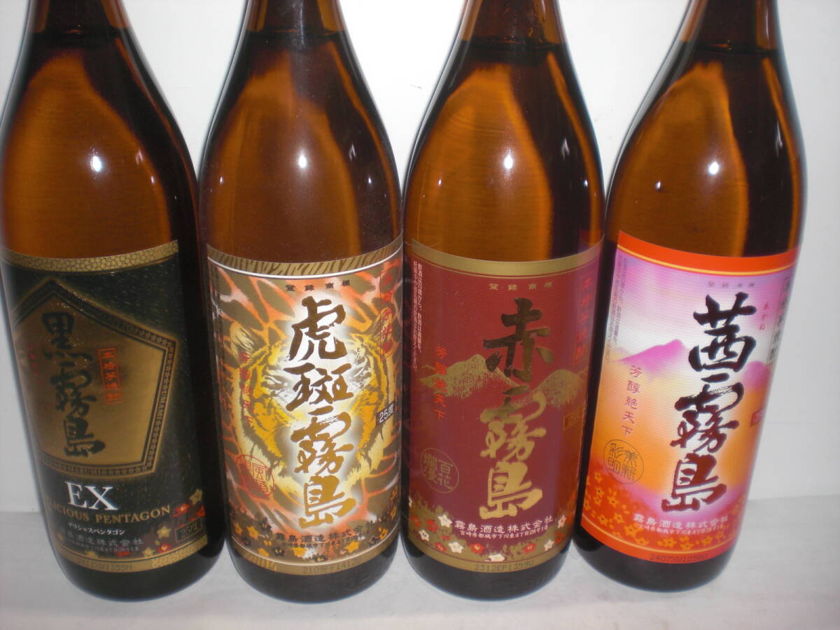 - 霧島酒造/黒霧島EX、虎斑霧島、赤霧島、茜霧島25度900ミリ4銘柄セツト価格化粧箱付き