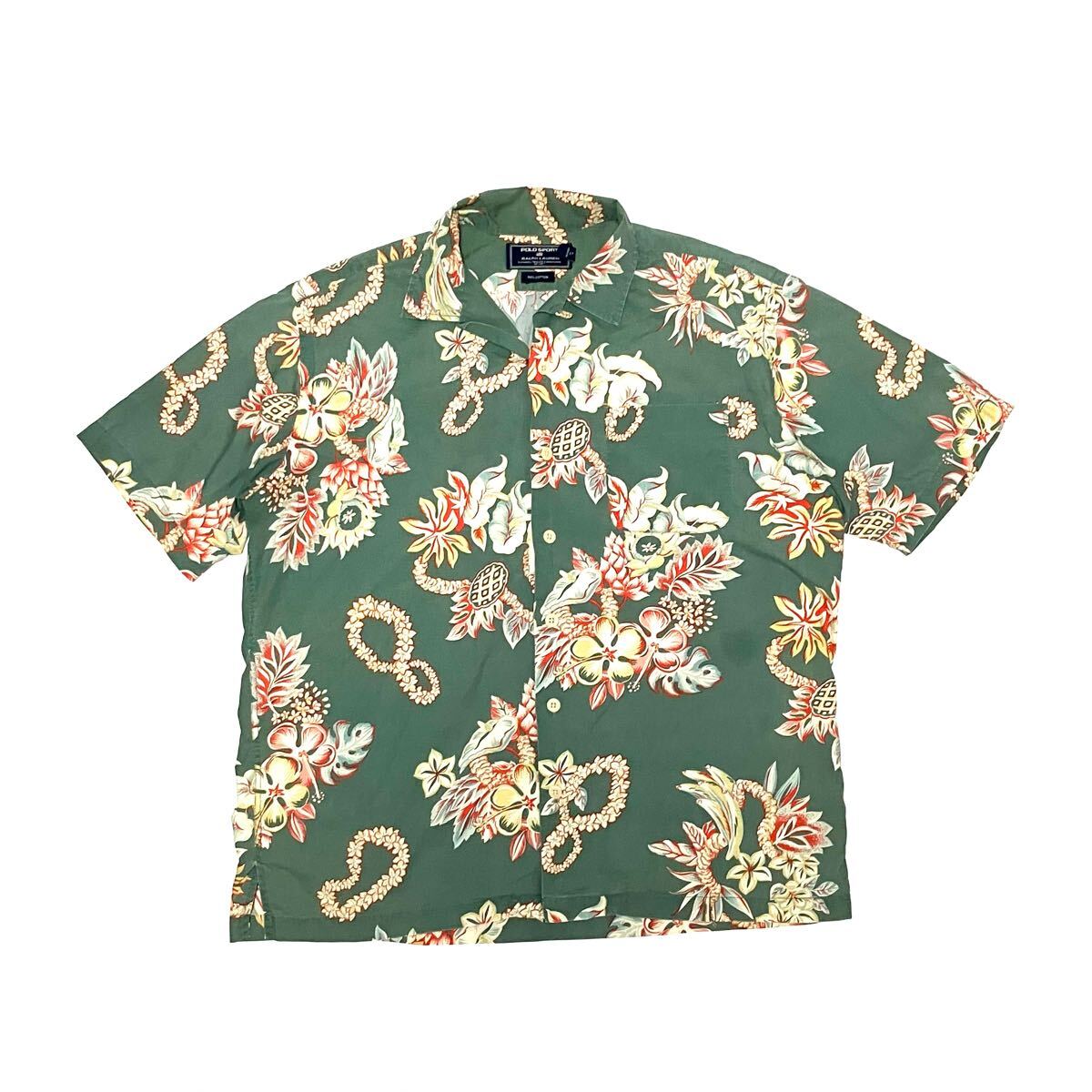 > L POLO SPORT ポロスポーツ プリント アロハ 半袖シャツ アロハシャツ ハワイアンシャツ オープンカラー 花柄 総柄 90s 90年代 グリーン