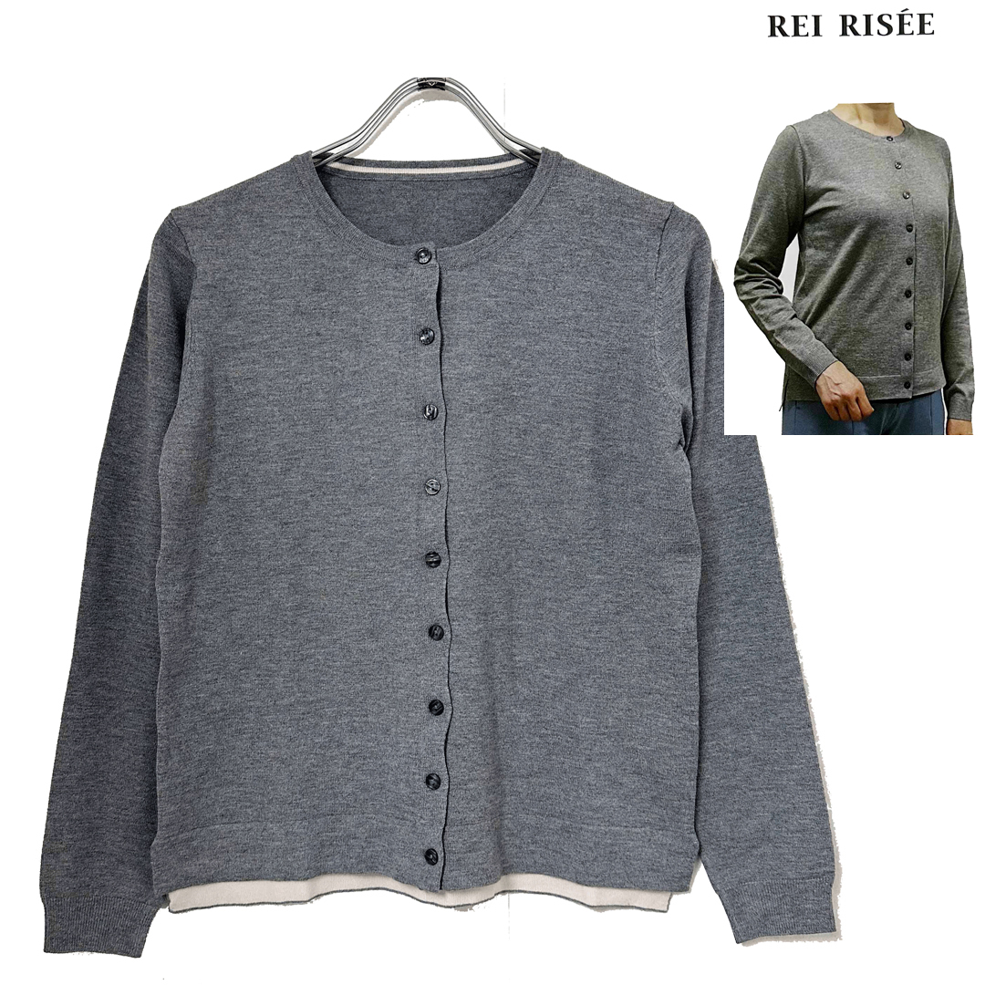 > 新品 M ★ コストコ REI RISEE レディース ニット カーディガン グレー 長袖 レーヨン混 レイリーゼ シンプル 薄手 羽織り ボタン開閉