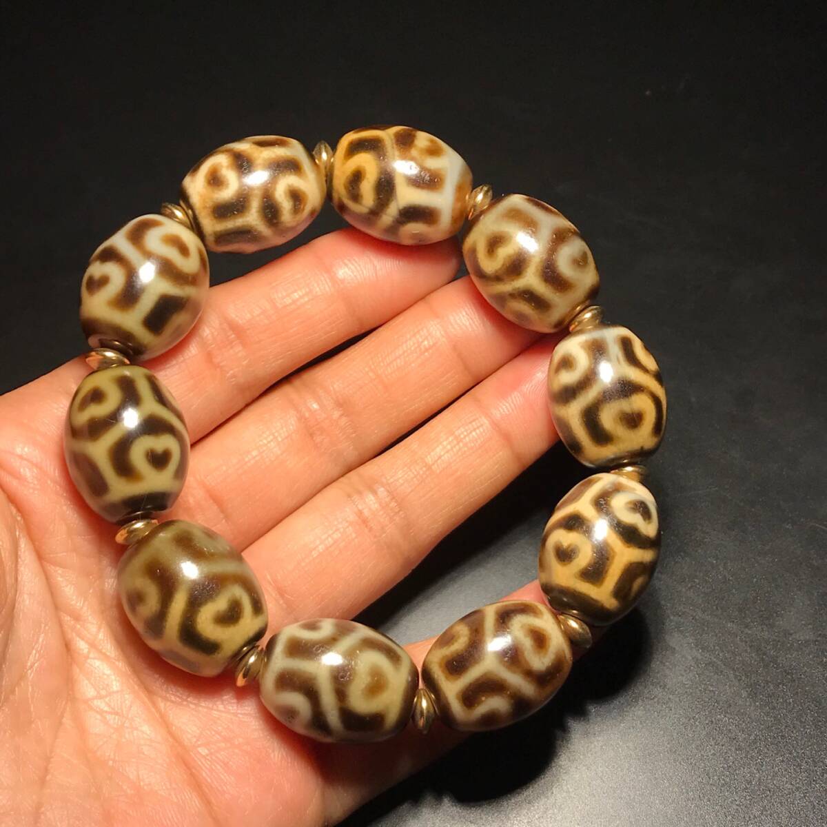 - ▽鴻▽ 瑪瑙製 細密彫 龜甲蓮花達洛天珠手串 置物 古賞物 中国古玩 中国古美術