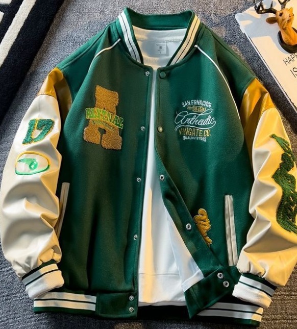 > 新入荷 春秋 スタジャン 刺繍 メンズ ブルゾン フライトジャケット 野球服 男女アウター PU袖 アメカジ 緑/2XL