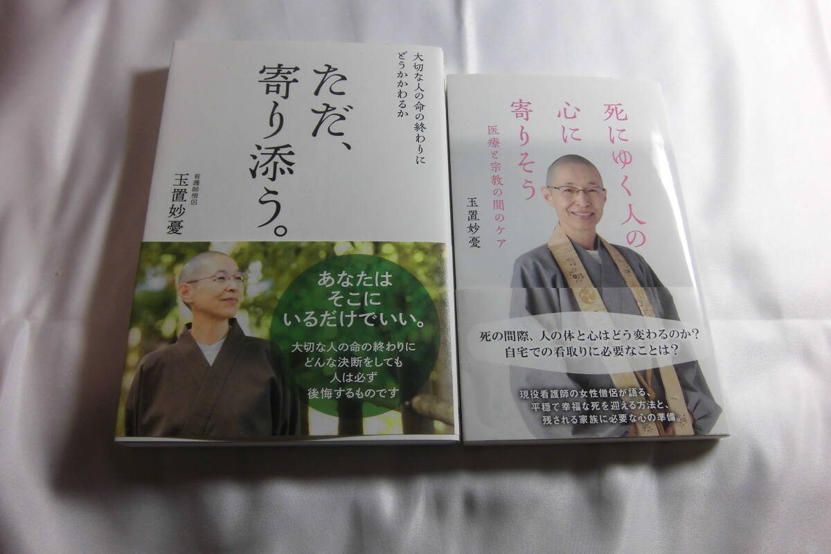 「大切な人の命の終わりにどうかかわるか ただ、寄り添う。」玉置妙憂 (著)2020年初版定価1300円+税。と「死にゆく人の心に寄りそう 医療と宗教の間のケア」玉置妙憂 (著)2019年初版2019年3刷定価760円+税。の計2冊セット。