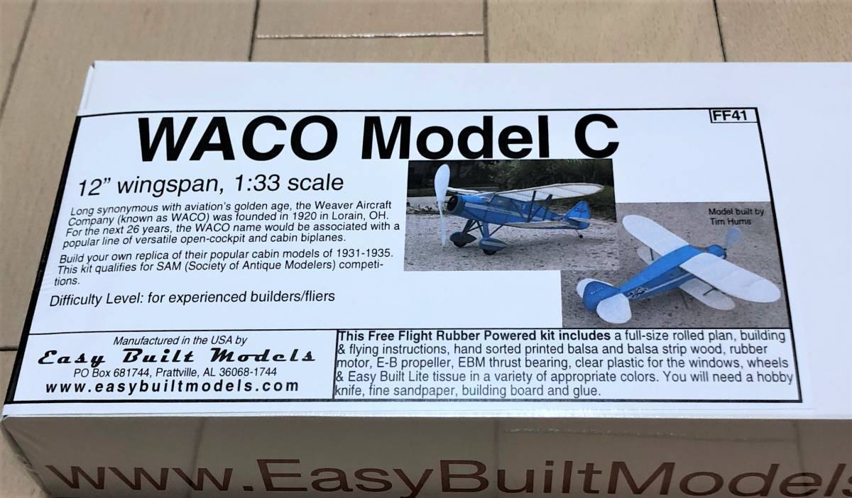 - 【ゴム動力ピーナッツ機】Easy Built製WACO Model C(翼長:12”=305mm)・・・残り2