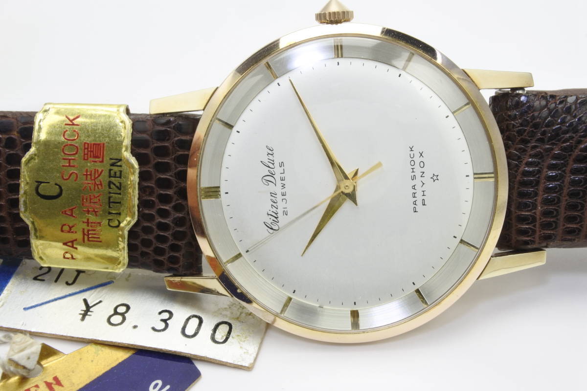 - 当時最高級薄型腕時計*1960年製 CITIZEN デラックス 耐震装置付 14k金張21石 手巻紳士腕時計 稀少文字盤