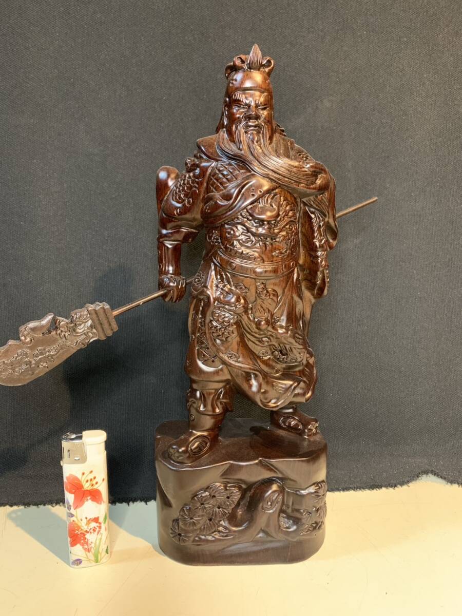 - A1-5 木彫 彫刻 唐木 一木作 天然木肌彫 関羽 人物像 茶道具 書道具 文房具 盆栽具 華道具 工芸品 美術品