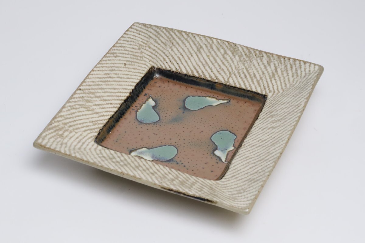 | ・益子焼 島岡達三 象嵌角皿 約23cm /人間国宝 益子皿 四方皿 柿釉 |