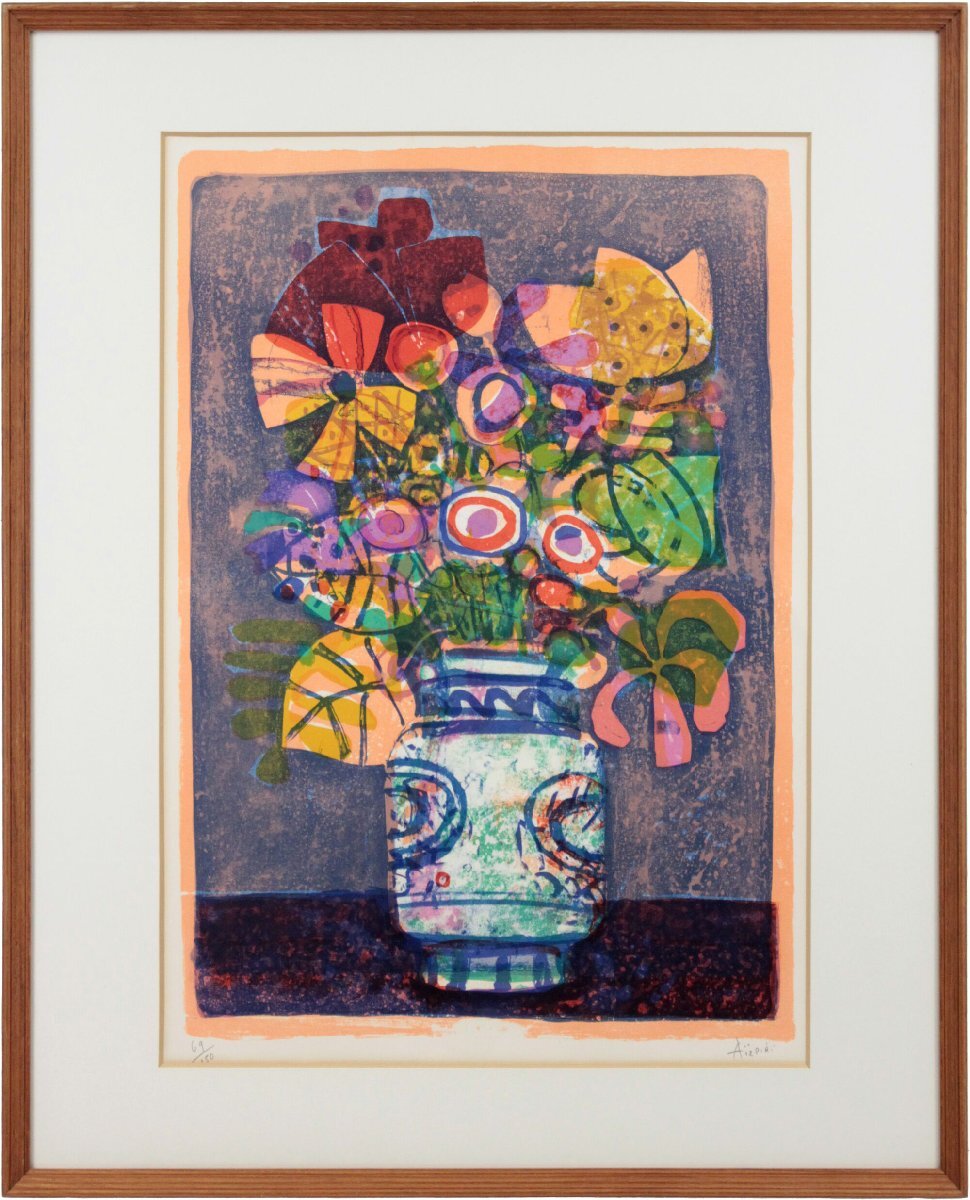 - ポール・アイズピリ 「青い背景の花束」 リトグラフ 版画 絵画 - 北海道画廊