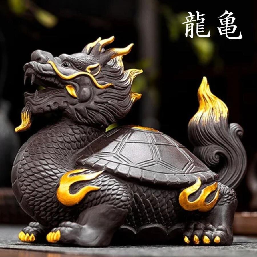 - 風水 龍亀 ロングイ ーVer4ー ブラック 陶器 髭金 天照亀 置物ドラゴン タートル 亀 カメ セラミック 龍亀の置物 竜 アイテム 龍神