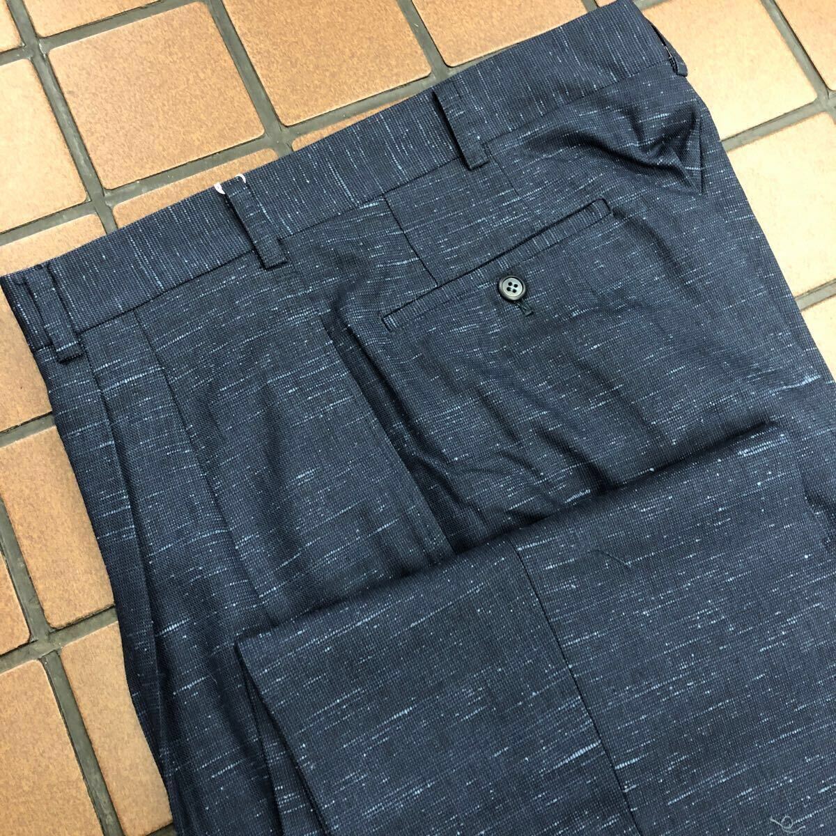 > 新品☆未使用 W91cm 日本製 艶感 ネイビー系 ゴルフパンツ メンズスラックス ゴルフウェア GOLF スラックス 2タック ふわふわ系