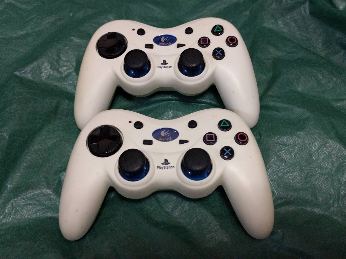 > レシーバーなし White 2つ PS2 Logitech Logicool コードレスコンパクトコントローラー G-X2D11 分解掃除&動作確認済