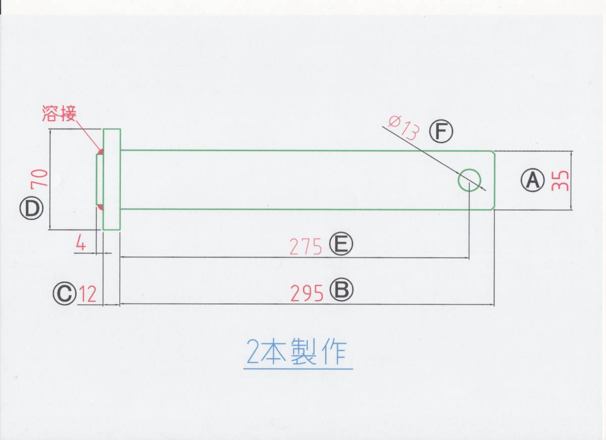 - NO 1541 Φ35用 溶接ツバ下295mm バケットピン 2本1セット