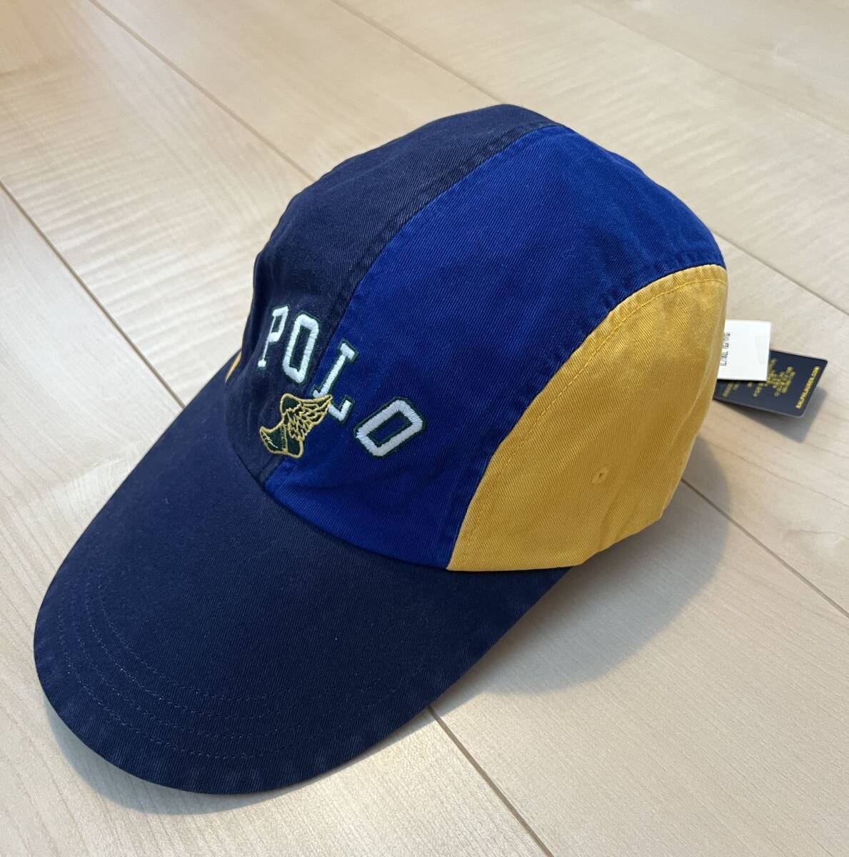 - ラスト! レア 新品 未使用 POLO RALPH LAUREN WINGFOOT ロングビル CAP 青黄 L/XL 1992 1993 P-WING STADIUM ヴィンテージ RL POLO SPORT