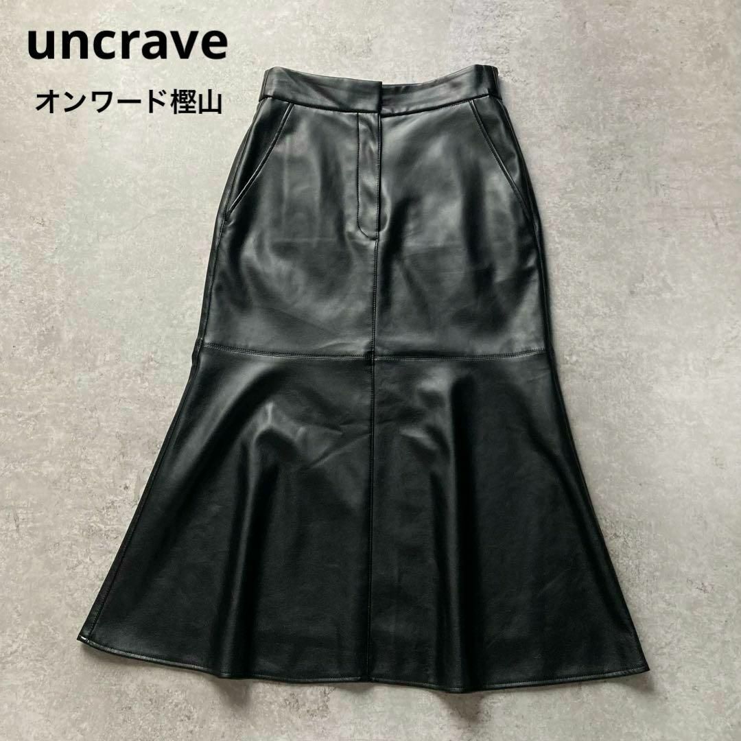 - 洗える!アンクレイヴ オンワード樫山 エコレザーロングスカート マーメイドスカート ブラック 黒 1サイズ uncrave