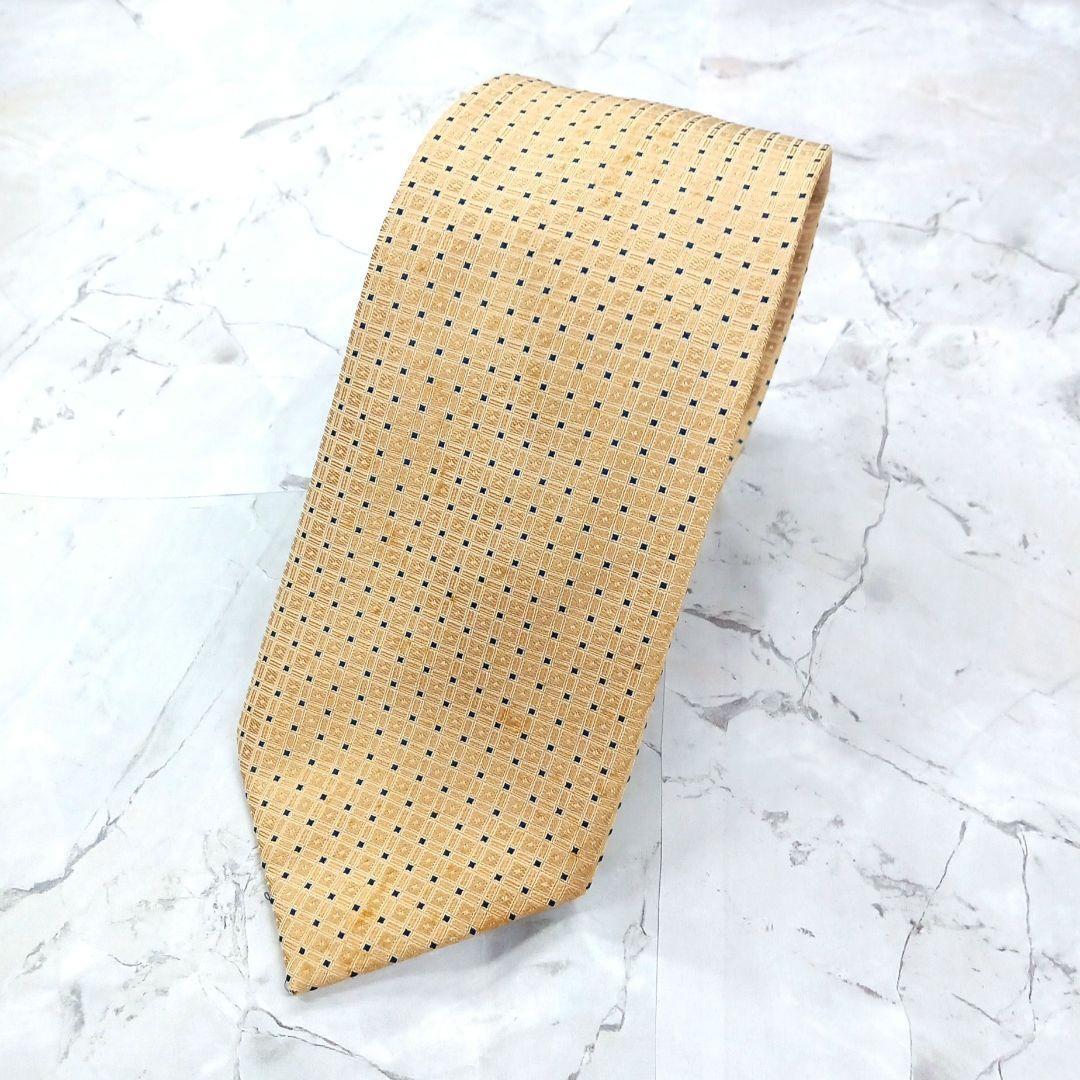 - オースチンリード ネクタイ 薄黄色 紺 白 小紋柄 シルク 英国【n795】