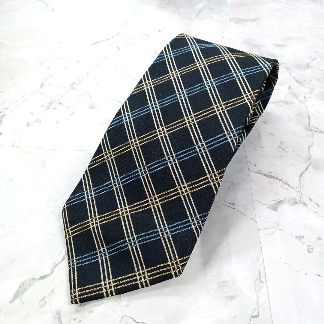 - オースチンリード ネクタイ 紺 水色 薄黄色 白 チェック シルク【n802】