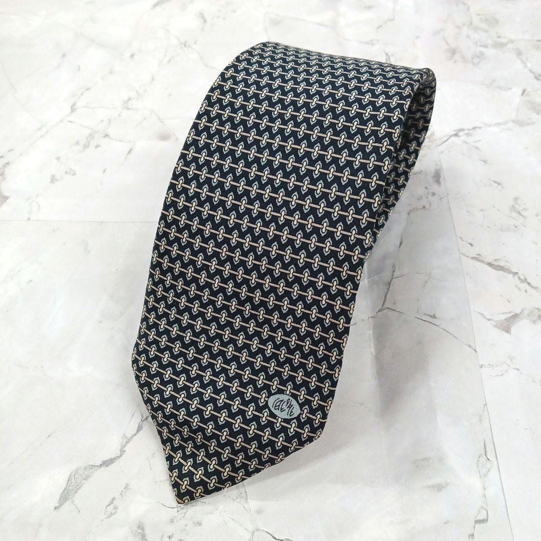 - オースチンリード ネクタイ 紺基調 チェーン柄 シルク100% 【n808】