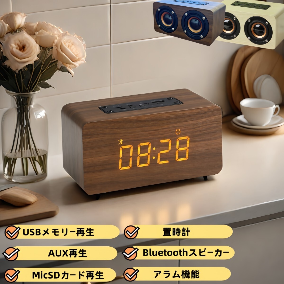 - ブルートゥーススピーカー Bluetoothスピーカー ワイヤレスピーカー スマホ 目覚まし 置き時計 アラーム ぶるーとぅーすすぴーかー