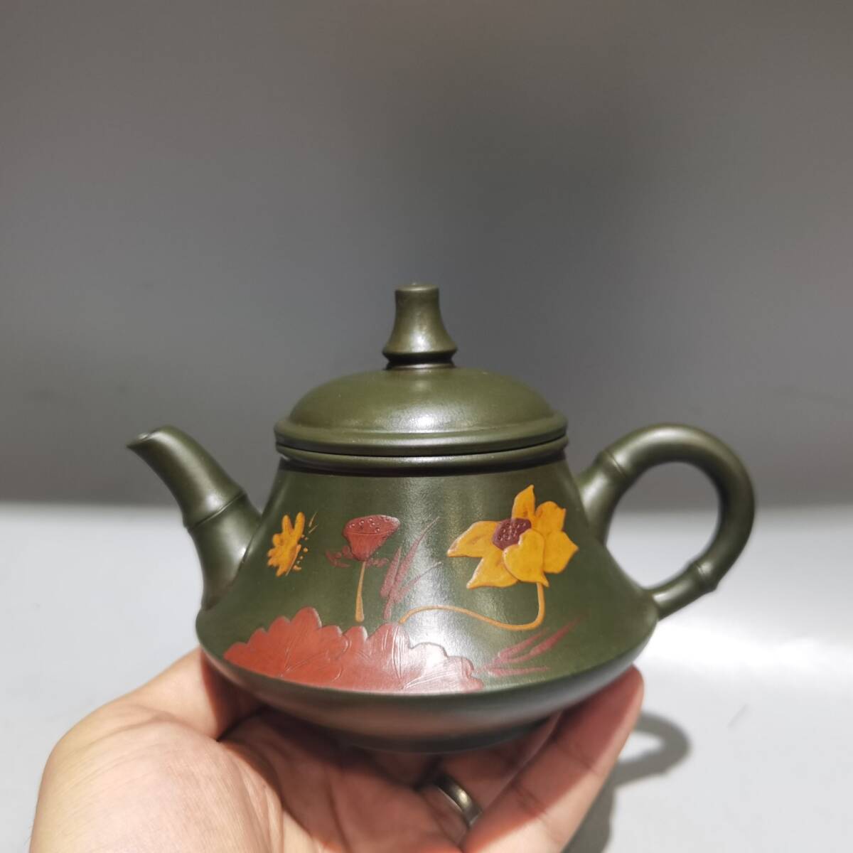- 『館蔵珍品 紫砂壺 泥繪壺 姜禮明款 綠泥 紫砂壺』置物 賞物 貴重物品 収蔵品 中国古美術