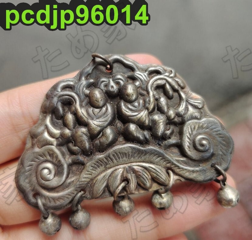 - 極美品 銀さん 双子 鈴がつき 帽子の花 白銅復古 多子魚 小魚 長い 如意のペンダント ペンダント