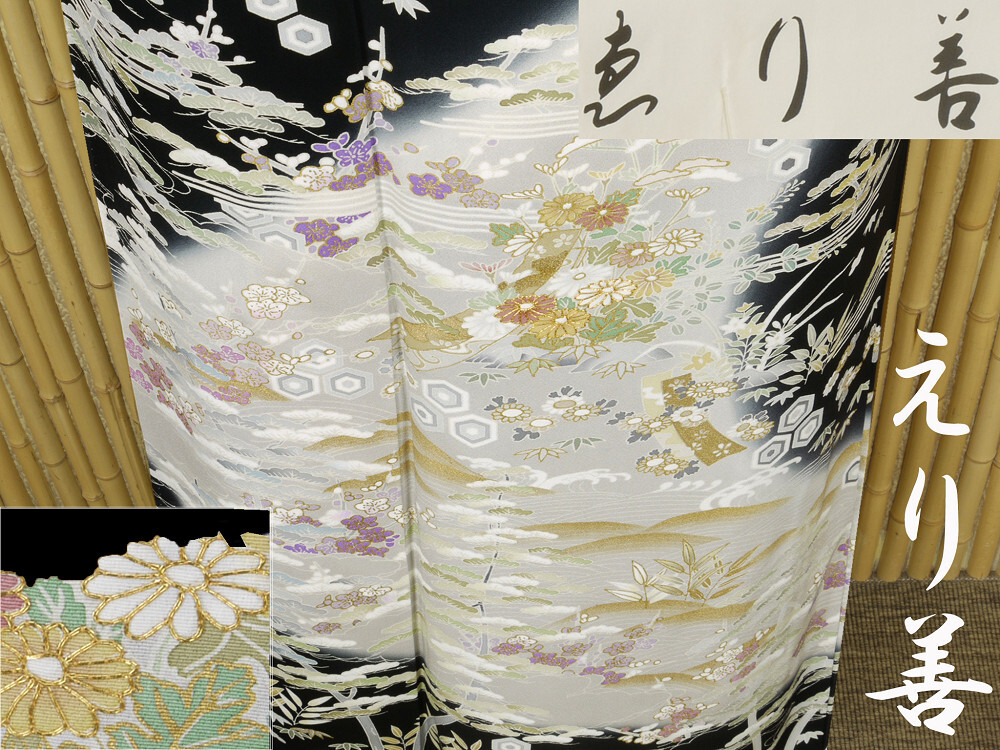 > 【京かんざし】633★京都の老舗呉服「ゑり善」特撰訪問着 身丈163 cm裄丈70.5 cm 黒地★即決送料無料!