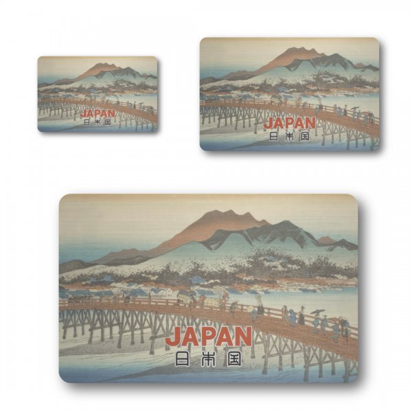 - 日本製 浮世絵 ステッカー 3点セット 四角 嵐山 ヘアライン マット 新品 日本の美しさ お土産 プレゼント おしゃれ シンプル 和柄 着物