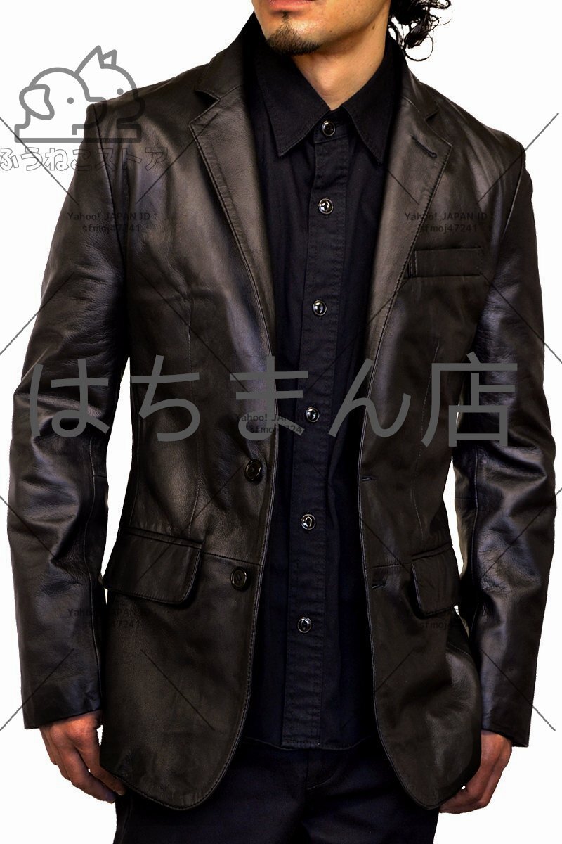 - レザージャケット テーラードジャケット メンズ 本革 革ジャン 黒 ブラック S-3XL