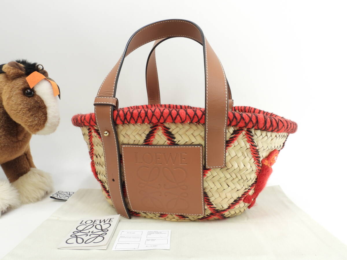 - ロエベ バスケットバッグスモール アニマル ナチュラル/タン赤 ハンド カゴバッグ 未使用@412018