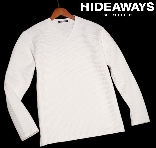 - 新品! ハイダウェイ ニコル ワッフル Vネック プルオーバー ホワイト 48 (L) ☆ HIDEAWAYS NICOLE ストレッチ 長袖 カットソー 中厚 白★
