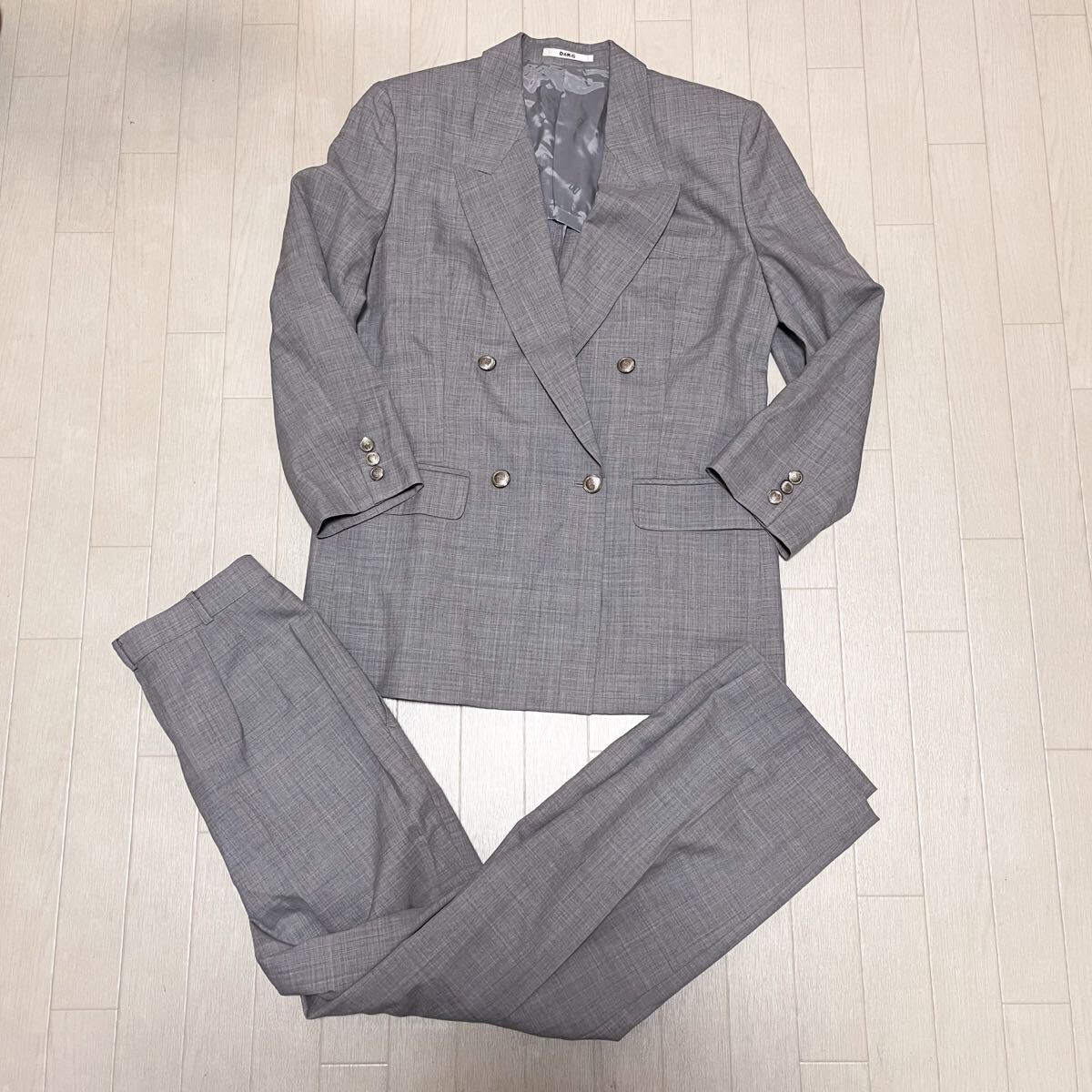 > K19★② DAKS ダックス スーツ セットアップ テーラードジャケット パンツ ダブルボタン 11AR 66-92 グレー レディース