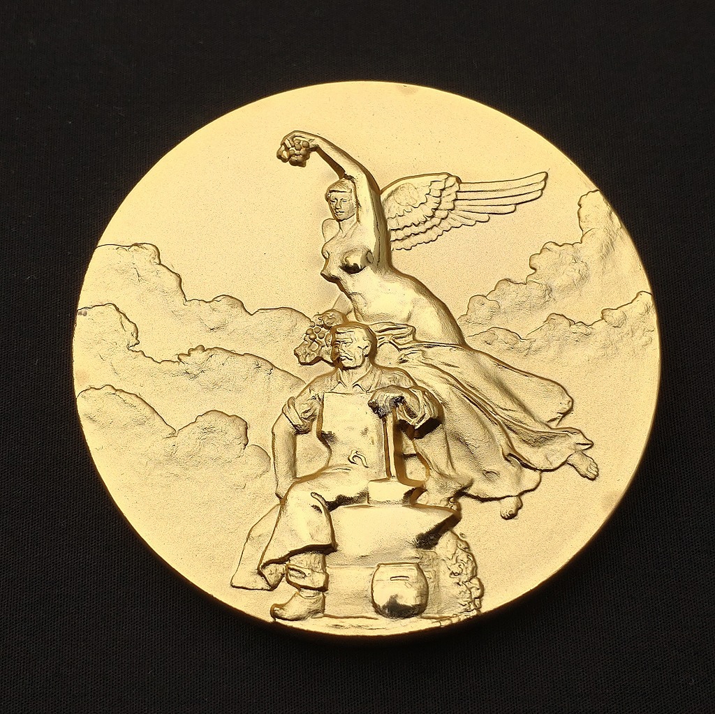 - 創価大学 メダル 真鍮製 直径約73㎜ SOKA UNIVERSITY 労苦と使命の中にのみ人生の価値は生まれる プラスチックケース入り 【5881K311】